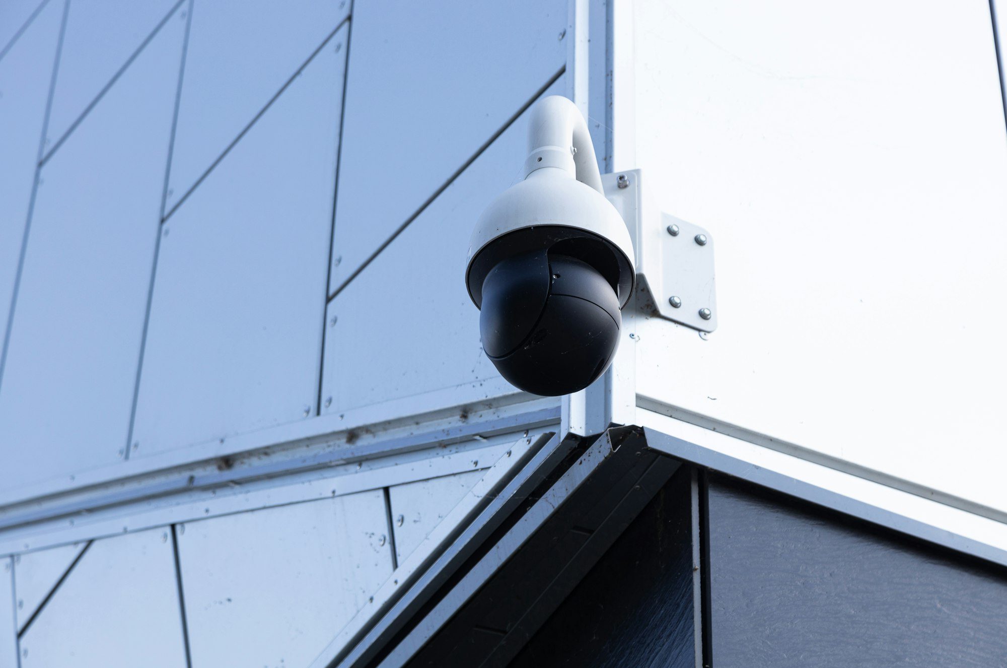 Cámaras de CCTV en la pared graban video todo el día para protegerse de ladrones, instalado por Cran Mantenimientos.